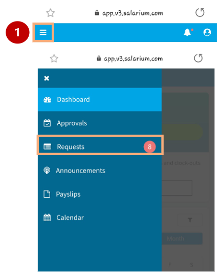 1. From the Top Navigation, click on the Side Menu > Requests.