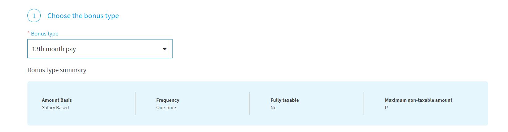 4. Under Bonus Type, select “13th month pay” from the dropdown options