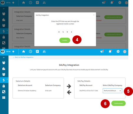 From the dropdown menu, select the SALPay Corporate Account to be linked with the company.