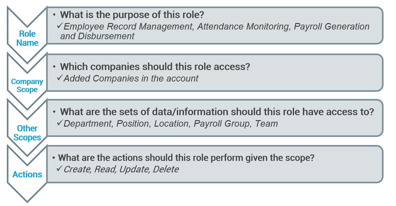 Creating a new user role involves the setting of permission that defines a user’s system access. A set of permission is a combination of scope and action. In which, scope refers to a part of the system a user can access, while action limits what can be done within a defined scope.